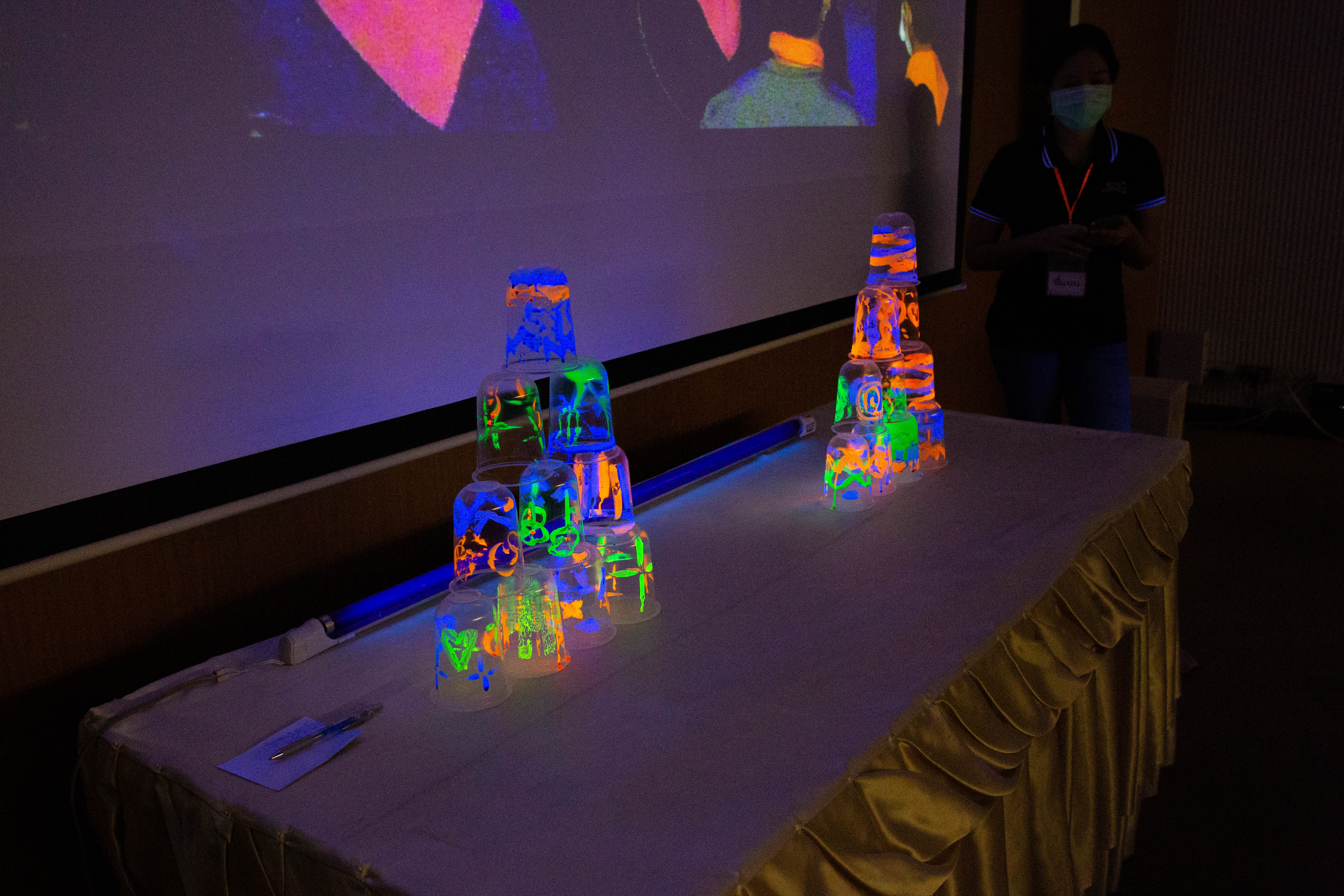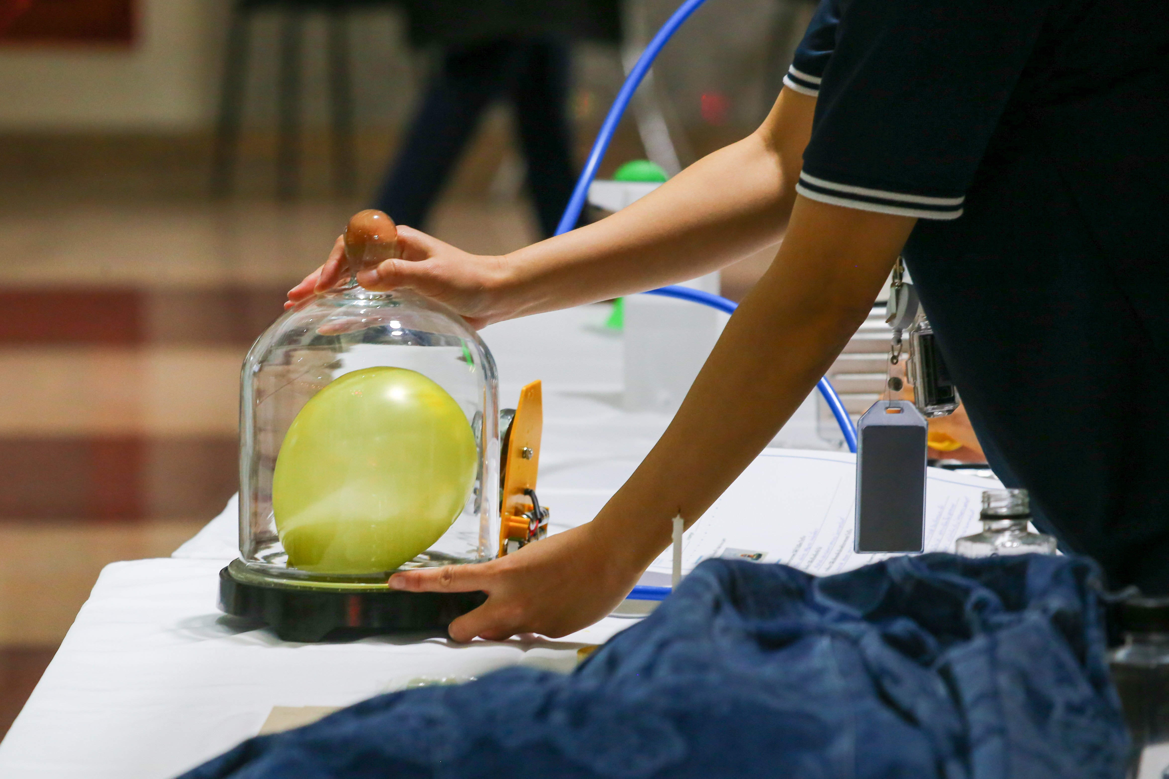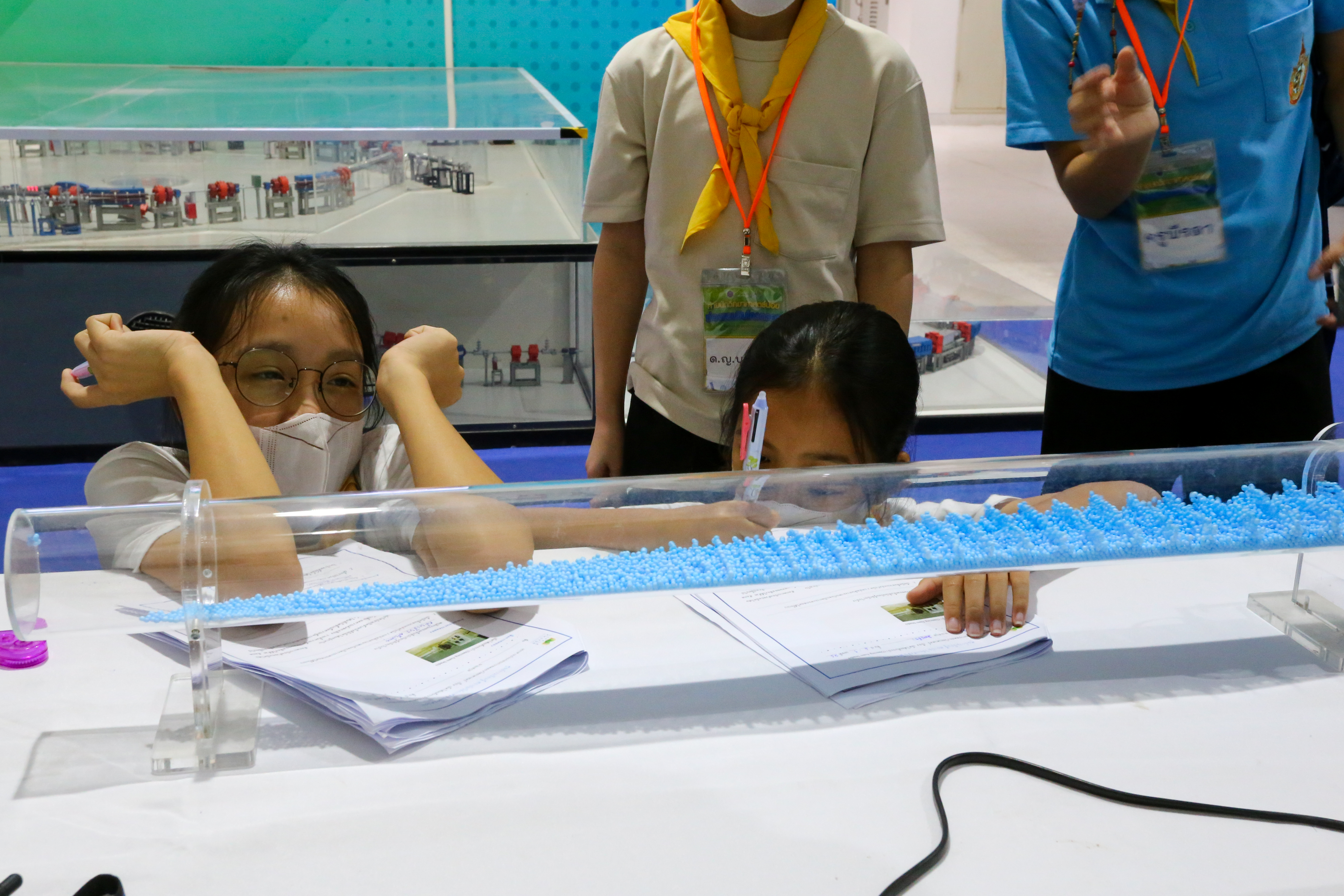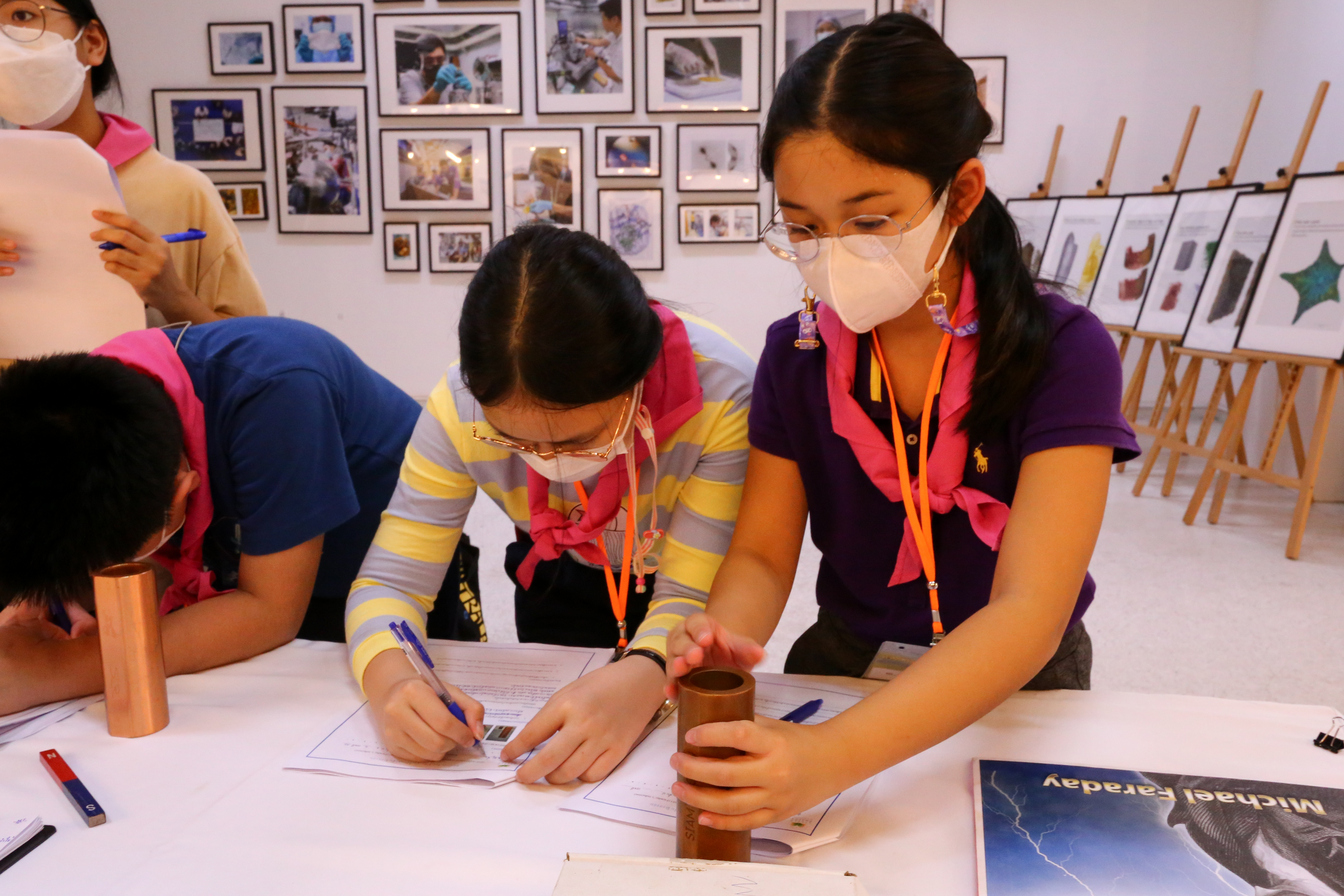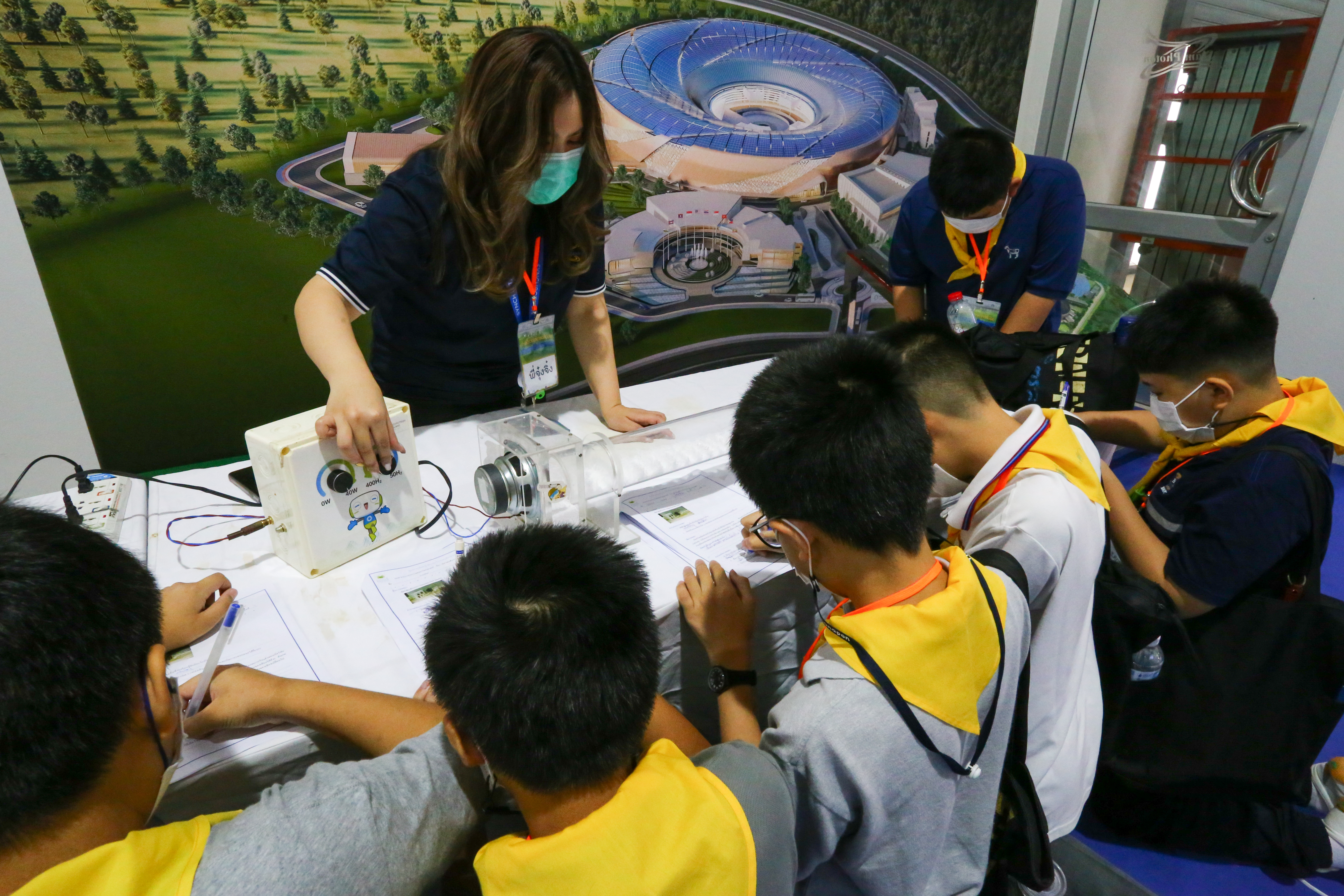 พี่ๆ นักวิทยาศาสตร์และผู้ช่วยนักวิจัยได้เตรียมฐานการทดลองให้น้องๆ ได้ร่วมสนุกถึง 10 ฐาน ได้แก่ ฐานกระดิ่งในโหลแก้ว ฐานสเปกตรัมคลื่นแม่เหล็กไฟฟ้า ฐานเครื่องเปลี่ยนทรงผมสุดแนว ฐานสิ่งมีชีวิตจิ๋วรอบตัว ฐานเม็ดโฟมเต้นระบำ ฐานภูเขาไฟระเบิด ฐานท่อถ่วงเวลา ฐาน Safe my life (Balloon) และฐานยาสีฟันช้าง พร้อมทั้งให้ความรู้ระหว่างทำกิจกรรมแต่ละฐานด้วย