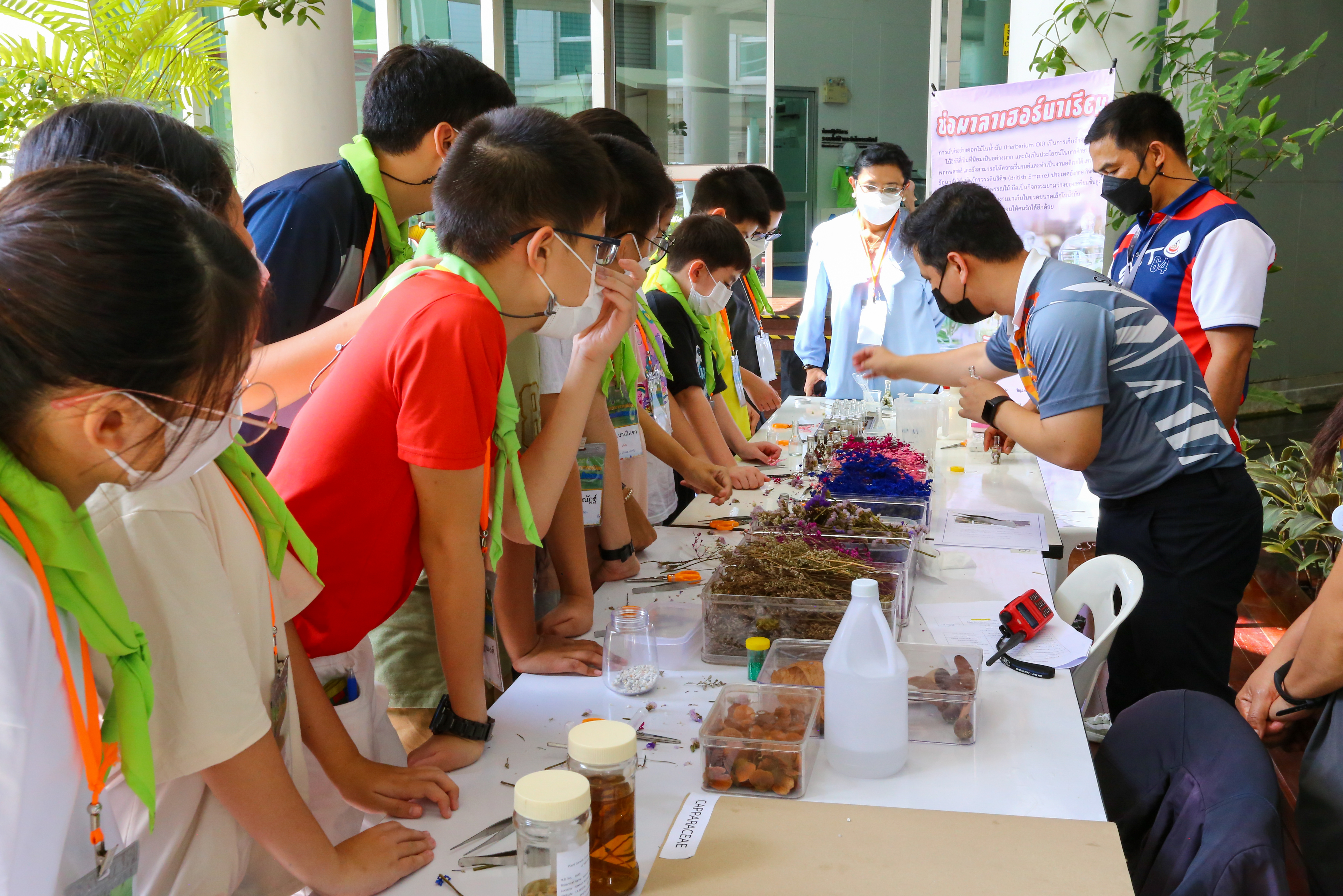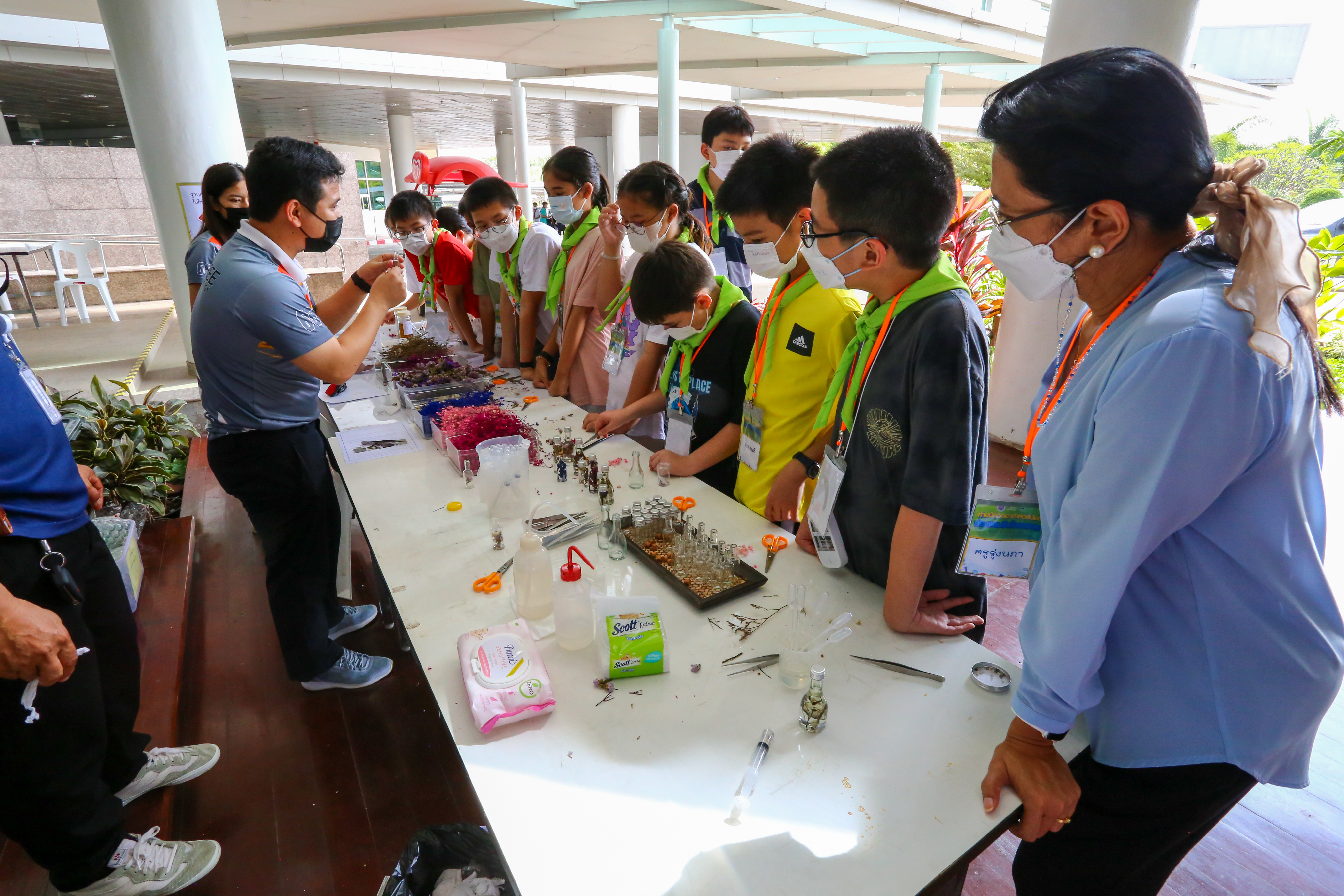 นอกจากนี้พี่ๆ จากศูนย์อนุรักษ์พันธุกรรมพืชอันเนื่องมาจากพระราชดำริ (อพ.สธ.คลองไผ่) ยังมาร่วมสร้างสีสันให้กิจกรรมในค่ายนักวิทยาศาสตร์น้อย โดยพาน้องๆ ร่วมเก็บพรรณไม้สวยๆ ลงขวดแก้วในกิจกรรมฐานขวดแก้วเหนือกาลเวลาด้วย จากนั้นปิดท้ายด้วยไฮไลท์สุดเซอร์ไพรส์กับการแสดง Science Show ที่พี่ๆ แปลงร่างเป็นพ่อมด-แม่มด พร้อมมายากลสุดสะพรึง นับเป็นการเปิดค่ายต้อนรับการกลับมาใช้ชีวิตอย่างปกติหลังจากล็อคดาวน์ที่ยาวนาน