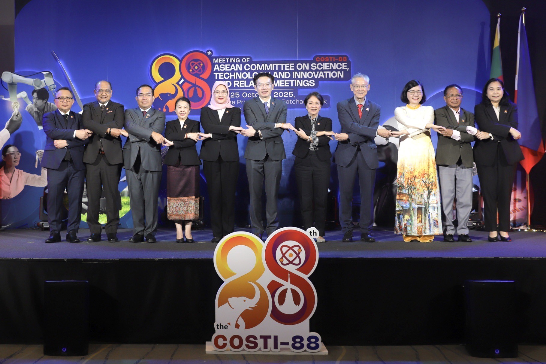 กองการต่างประเทศ สำนักงานปลัดกระทรวงการอุดมศึกษา วิทยาศาสตร์ วิจัยและนวัตกรรม (อว.) ได้เป็นตัวแทนประเทศไทยในการเป็นเจ้าภาพจัดการประชุม The 88th Meeting of ASEAN Committee on Science, Technology and Innovation and Related Meetings (COSTI88) ซึ่งมีผู้แทนจากประเทศสมาชิกอาเซียนและประเทศคู่เจรจาเข้าร่วมอย่างพร้อมเพรียง เพื่อหารือแนวทางการส่งเสริมความร่วมมือด้านวิทยาศาสตร์ เทคโนโลยี และนวัตกรรมในภูมิภาคอาเซียน ระหว่างวันที่ 17 – 25 ตุลาคม พ.ศ. 2568 ณ โรงแรม จุบีลี เพรสทีจน์ กรุงเทพฯ โดย รศ.ดร.สาโรช รุจิรวรรธน์ ผู้อำนวยการสถาบันวิจัยแสงซินโครตรอน ได้เข้าร่วมพิธีเปิดการประชุมนี้ด้วย