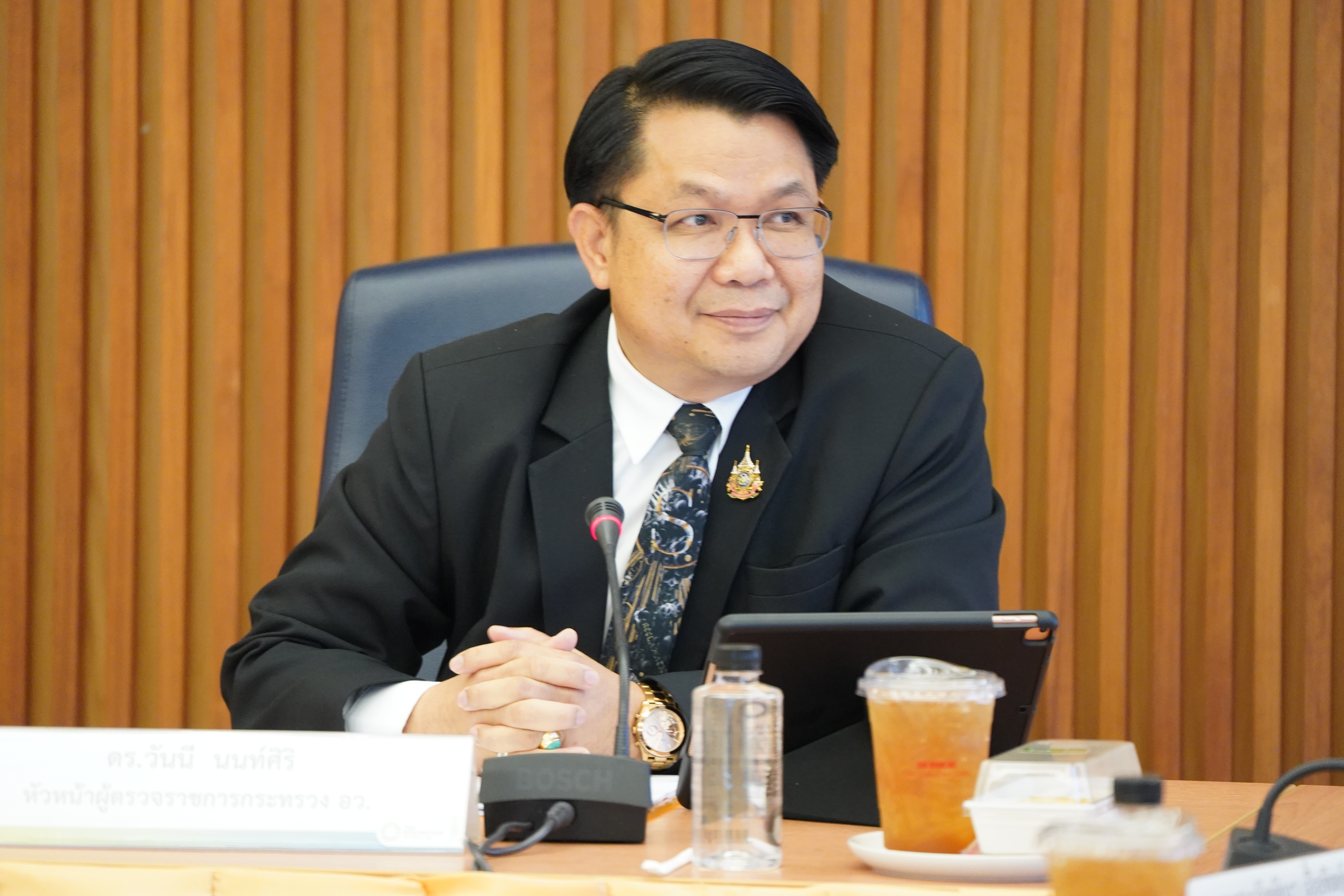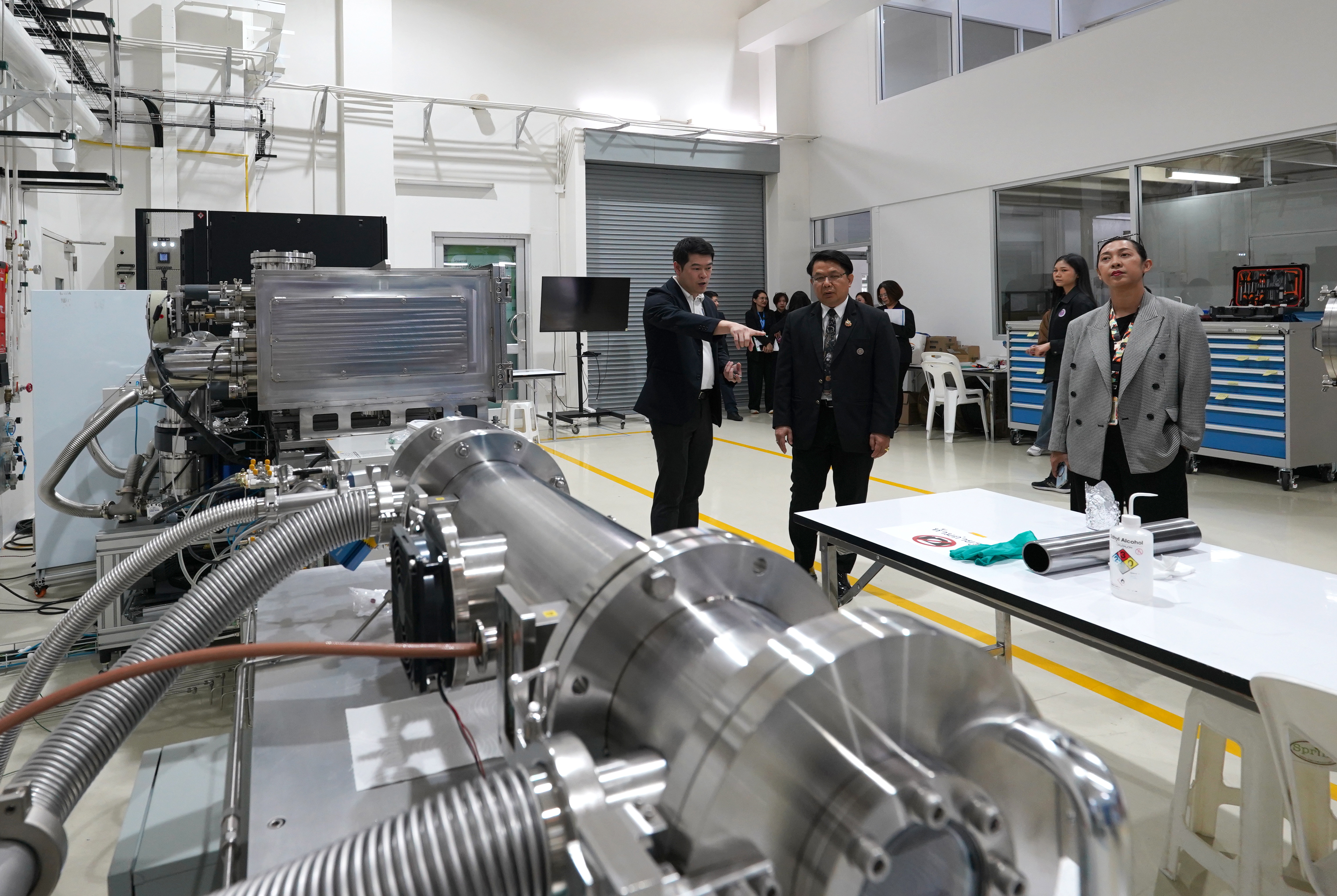 จากนั้นวันที่ 5 มีนาคม คณะผู้ตรวจราชการกระทรวง อว. ได้มาตรวจเยี่ยมภารกิจของสถาบันฯ เพื่อติดตามการดำเนินงานให้เป็นไปตามนโยบายรัฐบาล กฎหมายและแผนยุทธศาสตร์ของประเทศ พร้อมตรวจศูนย์ราชการสะดวก ในด้านบทบาท ภารกิจ และการให้บริการของสถาบันฯ โอกาสนี้คณะผู้ตรวจยังได้เยี่ยมชมห้องปฏิบัติการต่างๆ ของสถาบันฯ ได้แก่ ห้องปฏิบัติการแสงสยาม ห้องปฏิบัติการทางด้านเทคนิคและวิศวกรรม และห้องปฏิบัติการด้านอาหารและการเกษตร โดย รอง ผส.สำเริง ด้วงนิล รอง ผป.ดร.สุพัฒน์ กลิ่นเขียว รอง ผพ.ประพงษ์ คล้ายสุบรรณ์ และคณะผู้บริหารของสถาบันฯ ให้การต้อนรับ