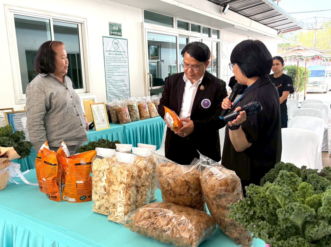 เมื่อวันที่ 4 มีนาคม คณะผู้ตรวจได้เดินทางไปติดตามโครงการตามยุทธศาสตร์ อว. ณ สหกรณ์กสิกรรมไร้สารพิษในเขตปฏิรูปที่ดิน อำเภอวังน้ำเขียว จำกัด โดย ผสซ. และ ผช.ผย.ระวีวรรณ เลิศสุขสมบัติ พร้อมคณะให้การต้อนรับ โอกาสนี้ ดร.ศิริวรรณ ณะวงษ์ หน.สอก. ได้สรุปการดำเนิน โครงการประยุกต์ใช้เทคโนโลยีแสงซินโครตรอนในการพัฒนาผลิตภัณฑ์อาหารจากเศษผักอินทรีย์ ซึ่งเป็นโครงการภายใต้ยุทธศาสตร์ในการพัฒนาเศรษฐกิจให้มีความสามารถในการแข่งขันและพึ่งพาตนเองได้อย่างยั่งยืนด้วย อววน. ที่พัฒนาร่วมกับสหกรณ์กสิกรรมไร้สารพิษฯ ในการนำวัตถุดิบที่เหลือจากการตัดแต่งมาแปรรูปเป็นข้าวเกรียบผักเชิงหน้าที่ พร้อมผลิตและจำหน่ายเชิงพาณิชย์