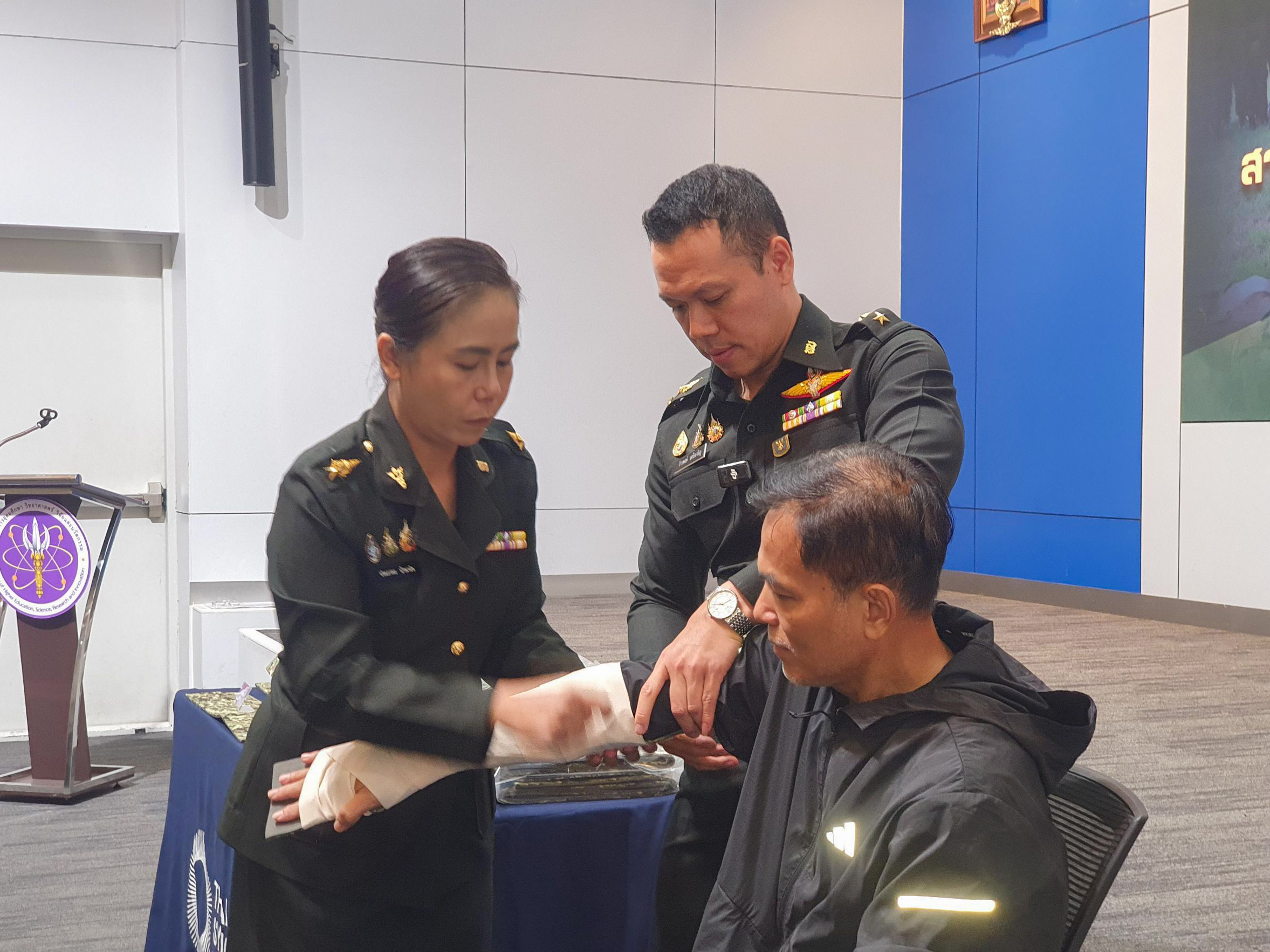 สถาบันวิจัยแสงซินโครตรอน (องค์การมหาชน) กระทรวงการอุดมศึกษา วิทยาศาสตร์ วิจัยและนวัตกรรม (อว.) ประยุกต์องค์ความรู้และความเชี่ยวชาญทางด้านวิศวกรรมขั้นสูง สู่งานความมั่นคงของประเทศ สนับสนุนภารกิจแพทย์ทหาร โดยร่วมมือกับแพทย์ผู้เชี่ยวชาญจากโรงพยาบาลค่ายสุรนารี พัฒนาสายรัดห้ามเลือดแบบก้านหมุน และเฝือกอ่อนเพื่อใช้งานในราชการสนาม ผลทดสอบเทียบเท่ามาตรฐานสากล มีต้นทุนถูกกว่านำเข้า สร้างโอกาสพึ่งพาตนเองอย่างยั่งยืน