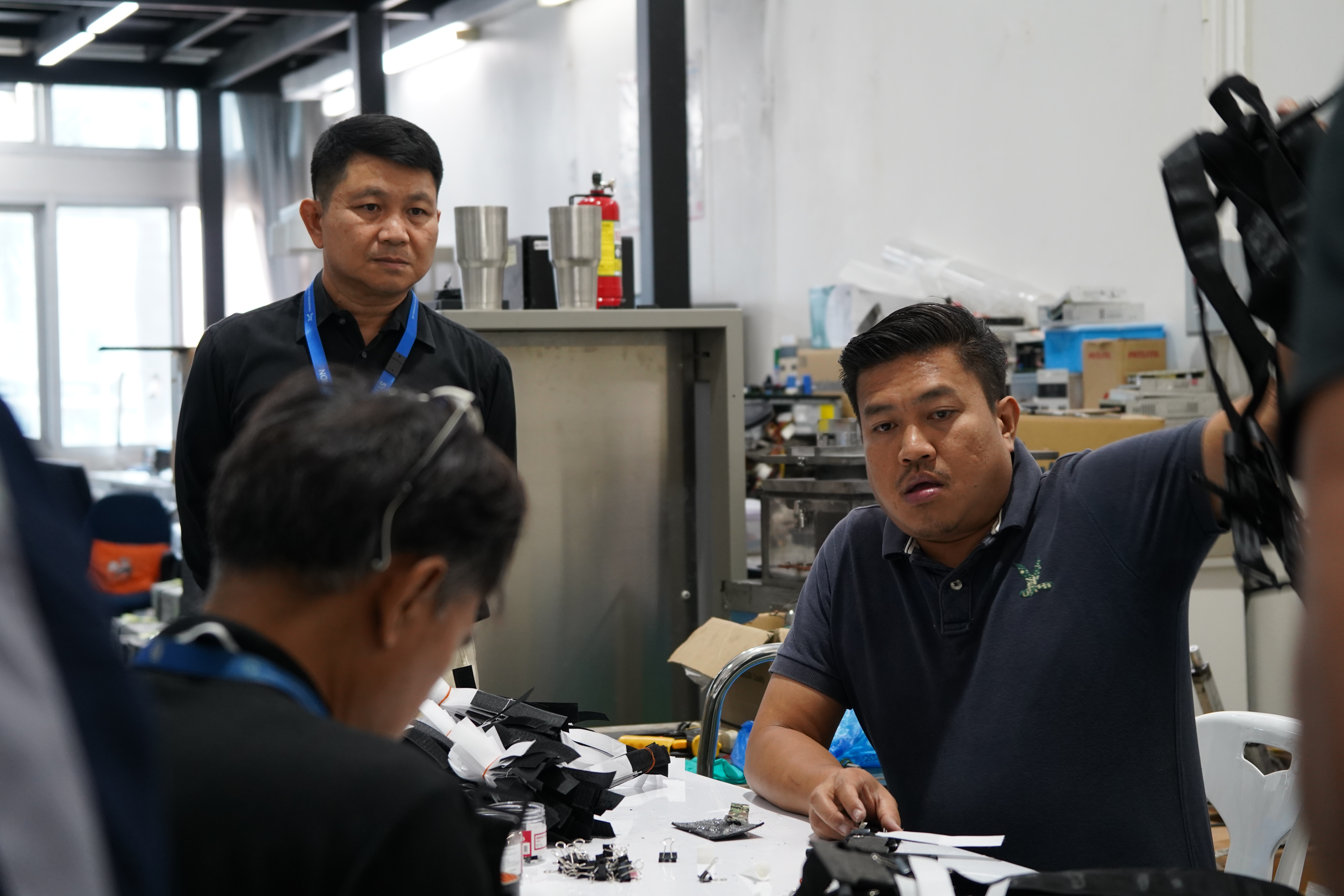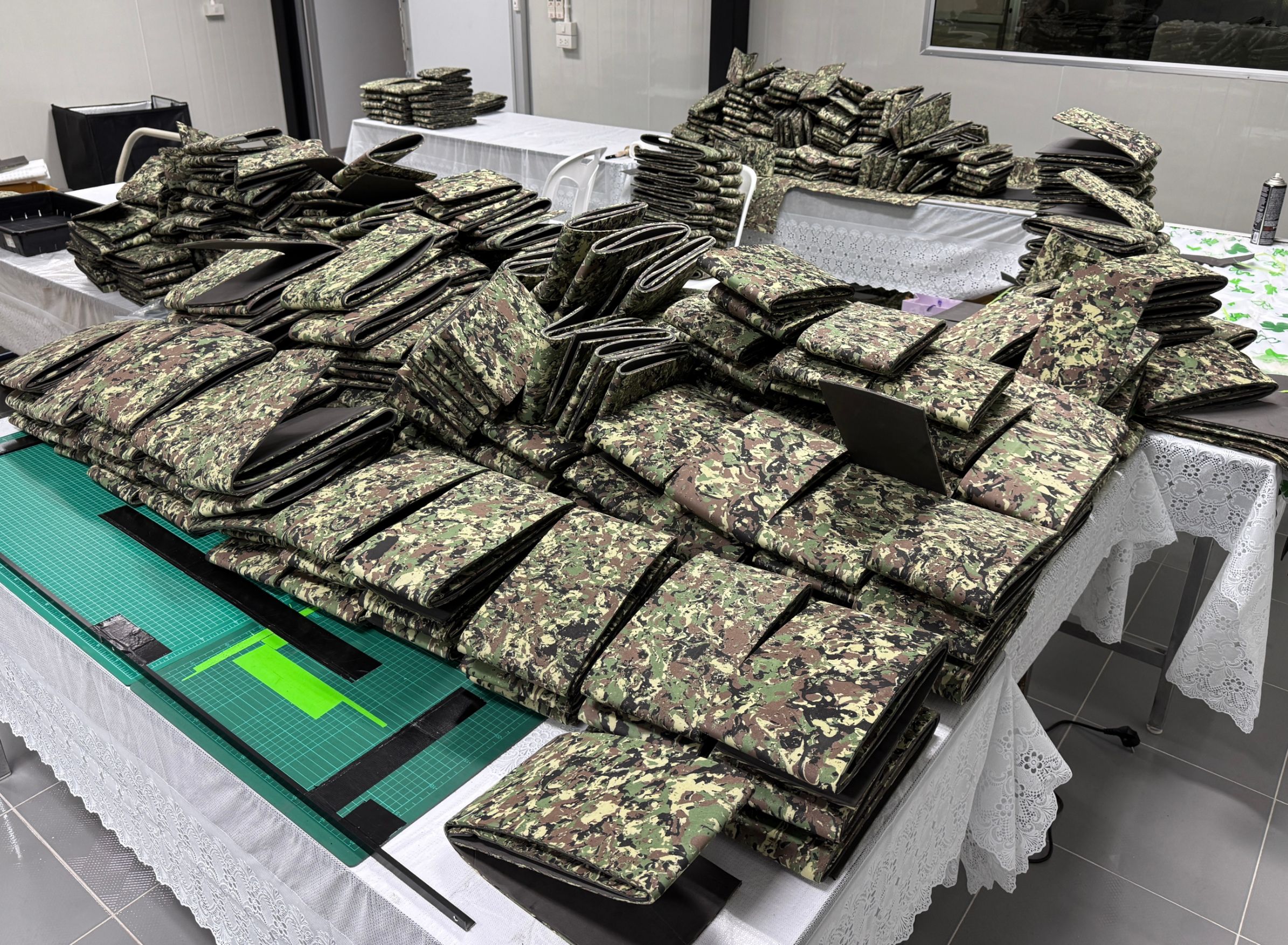 อุปกรณ์สำหรับราชการสนามทั้ง 2 ชนิดนี้ สถาบันฯ ผลิตขึ้นโดยได้รับคำปรึกษาจากแพทย์ผู้เชี่ยวชาญของโรงพยาบาลค่ายสุรนารี ผนวกเข้ากับความเชี่ยวชาญทางด้านวิศวกรรมของสถาบันฯ โดยวัสดุในการผลิตสายรัดห้ามเลือดและเฝือกอ่อนนั้น เป็นอะลูมิเนียมที่สถาบันฯ นำมาอบอ่อน (Annealing) เพื่อลดความแข็งและเพิ่มความเหนียวให้กับวัสดุด้วยเครื่องมือของห้องปฏิบัติการทางเทคนิคและวิศวกรรม ซึ่งปกติใช้งานในการพัฒนาและซ่อมบำรุงเครื่องกำเนิดแสงซินโครตรอนและระบบลำเลียงแสง