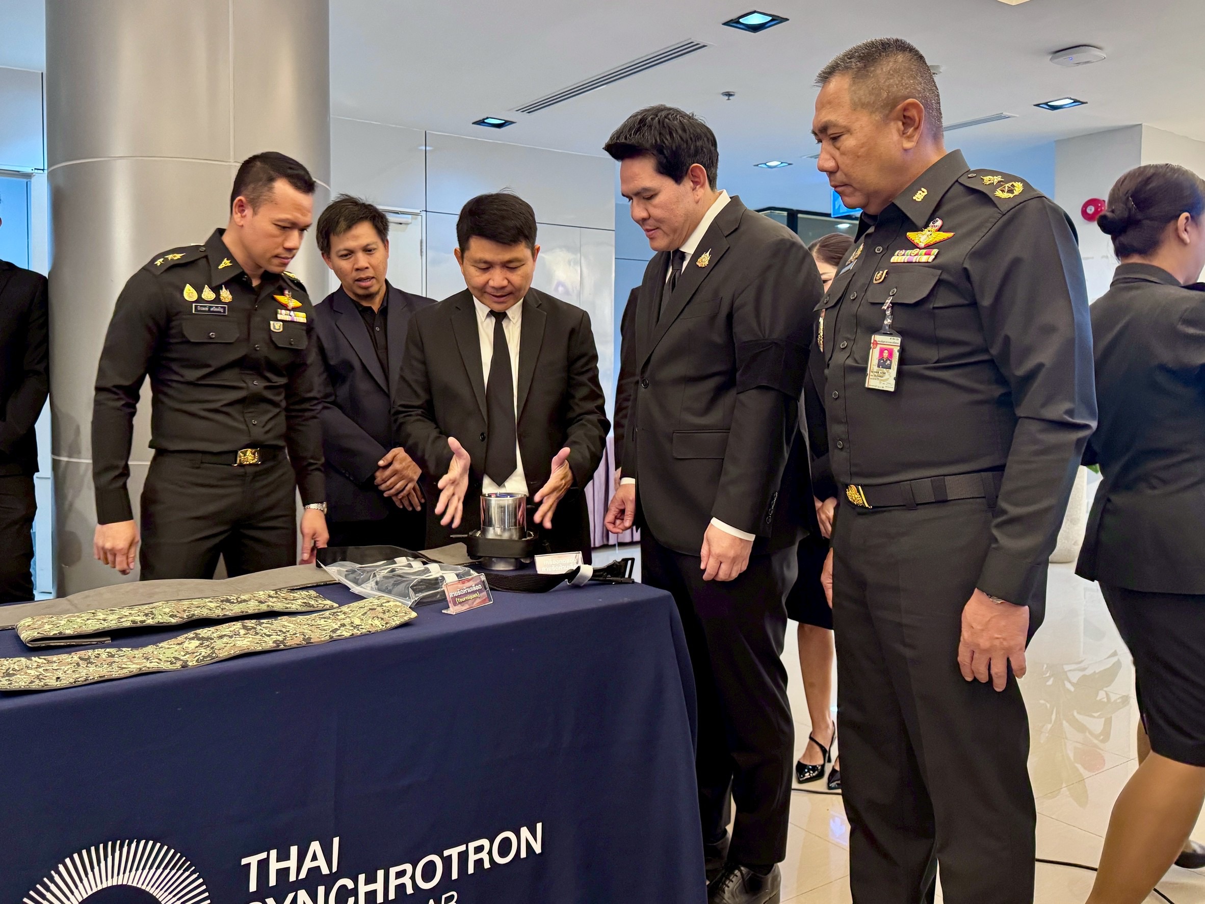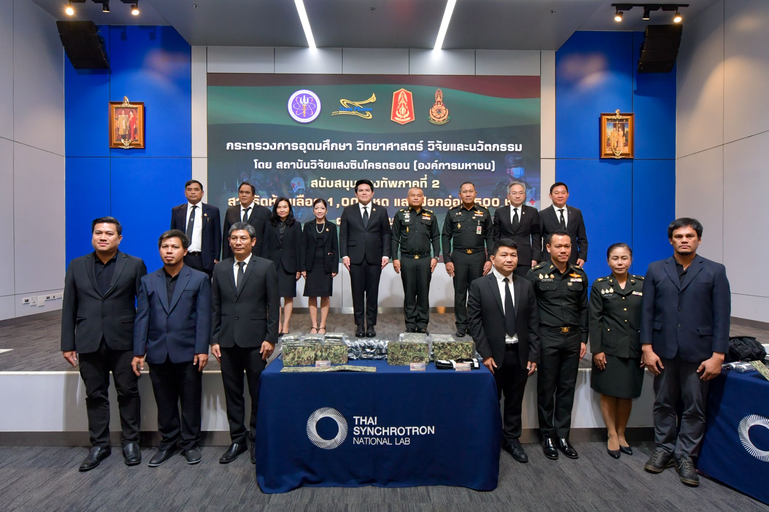 พร้อมกันนี้ รศ.ดร.สาโรช รุจิรวรรธน์ ผู้อำนวยการสถาบันวิจัยแสงซินโครตรอน กล่าวว่า “การพัฒนาสายรัดห้ามเลือดและเฝือกอ่อนเพื่อใช้งานในราชการภาคสนามนี้ เป็นส่วนหนึ่งของการประยุกต์ใช้ความเชี่ยวชาญของสถาบันวิจัยแสงซินโครตรอนเพื่อความมั่นคงของประเทศ ซึ่งหลังจากนี้จะได้ถ่ายทอดองค์ความรู้ในการผลิตให้แก่ผู้เกี่ยวข้องเพื่อการผลิตที่เพียงพอต่อความต้องการ และสถาบันฯ ยังคงมุ่งมั่นในการนำวิทยาศาสตร์แสงซินโครตรอนและเทคโนโลยีขั้นสูงมาประยุกต์ใช้ในหลากหลายสาขา เพื่อขับเคลื่อนองค์ความรู้และการพัฒนาประเทศอย่างยั่งยืนต่อไป”