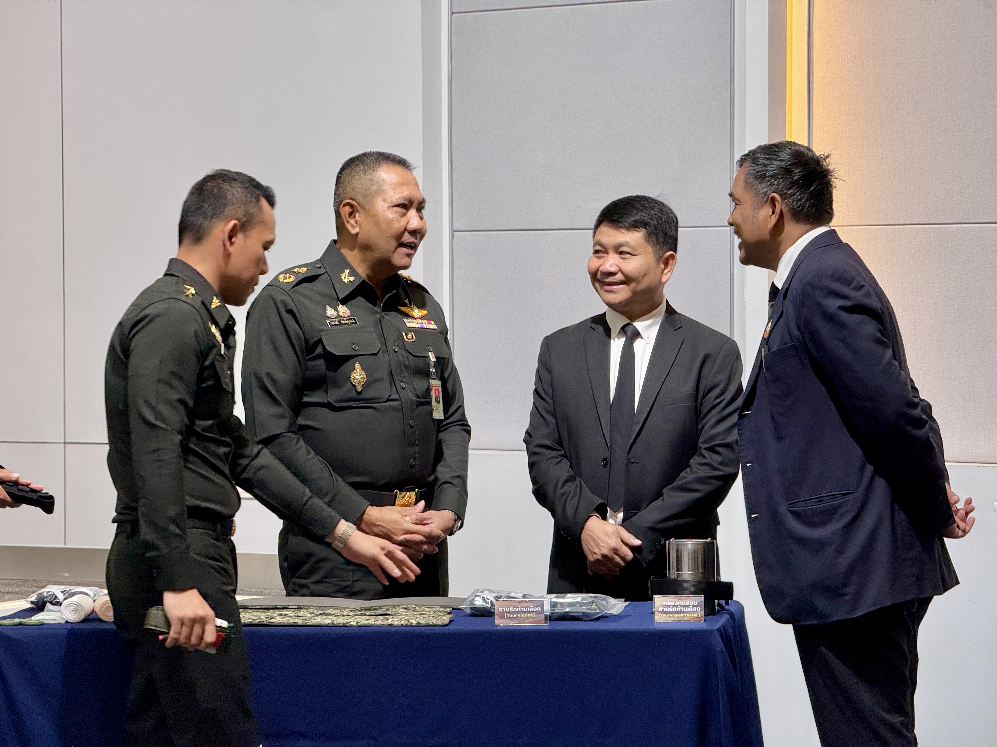 ทั้งนี้ สถาบันวิจัยแสงซินโครตรอน และโรงพยาบาลค่ายสุรนารี ได้ร่วมพัฒนา 2 อุปกรณ์ ได้แก่ 1. สายรัดห้ามเลือดแบบก้านหมุน หรือ “ทูนิเก้” (Combat Application Tourniquet: CAT) ซึ่งเป็นอุปกรณ์สำคัญทางเวชศาสตร์ฉุกเฉิน ที่ใช้เพื่อควบคุมภาวะเลือดออกรุนแรงจากบาดแผลที่แขนหรือขา ซึ่งไม่สามารถหยุดเลือดได้ด้วยวิธีกดแผลโดยตรง และ 2. เฝือกอ่อน (Splint) ซึ่งเป็นอุปกรณ์ปฐมพยาบาลสำเร็จรูปสำหรับตรึงกระดูกหรือข้อเคลื่อนชั่วคราว