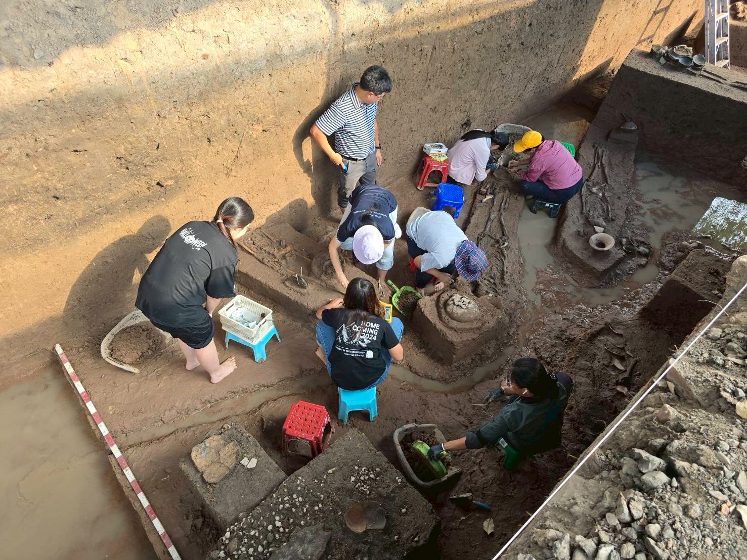 ทั้งนี้ ทีมนักวิทยาศาสตร์ของ สถาบันวิจัยแสงซินโครตรอน นำโดย ผศ.ดร.ศุภกร รักใหม่ รองผู้อำนวยการปฏิบัติการและใช้ประโยชน์ระบบลำเลียงแสง ได้วิเคราะห์องค์ประกอบธาตุ ของเครื่องประดับทองโบราณ รวมทั้งชิ้นส่วนเครื่องใช้ เครื่องประดับอื่นๆ ที่พบร่วมกับโครงการดูก โดยนำเครื่องมือทางวิทยาศาสตร์และเทคนิคการวิเคราะห์ด้วยแสงซินโครตรอนหลายๆ เทคนิคมาใช้ในการศึกษา ได้แก่ เทคนิคการเรืองรังสีเอกซ์ (XRF) และเทคนิคอินฟราเรดสเปกโตรสโคปี (IR) โดยเฉพาะอย่างยิ่ง การวิเคราะห์ตัวอย่างทองด้วยแสงซินโครตรอนสามารถวิเคราะห์ธาตุองค์ประกอบในทอง เพื่อนำไปสู่การเชื่อมโยงกับต้นกำเนิดของทองในอดีต