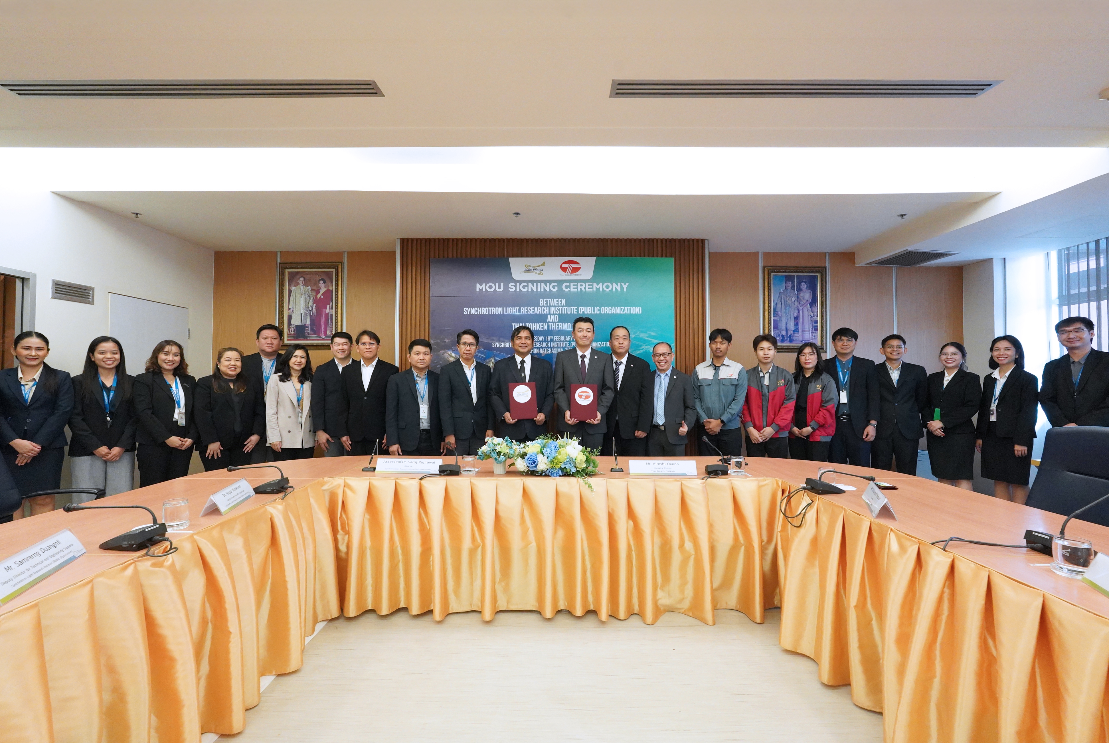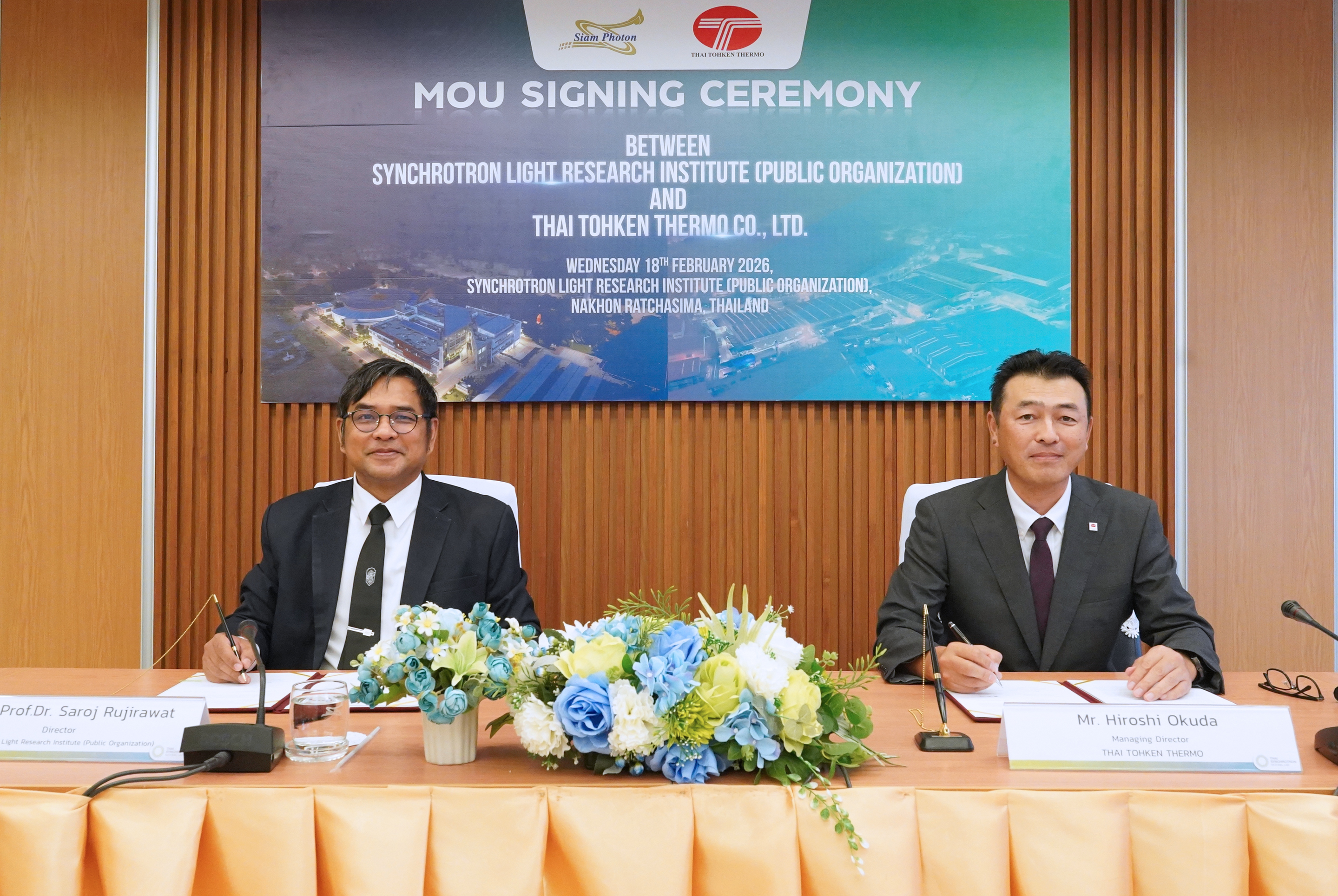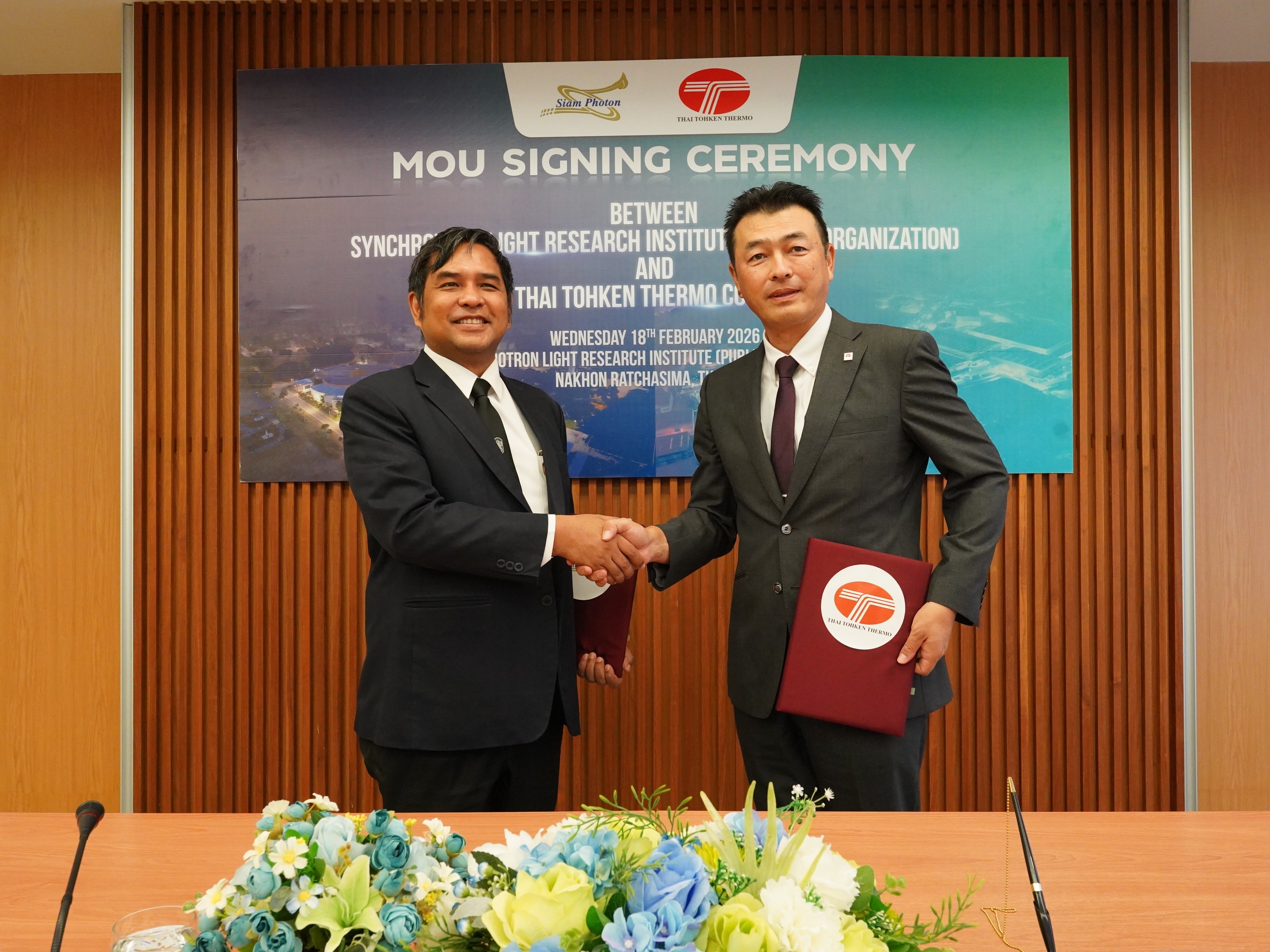 สถาบันวิจัยแสงซินโครตรอน (องค์การมหาชน) กระทรวงการอุดมศึกษา วิทยาศาสตร์ วิจัย และนวัตกรรม (อว.) ได้ร่วมลงนามบันทึกข้อตกลงความร่วมมือกับ บริษัท ไทยโตเคน เทอร์โม จำกัด ผู้ประกอบการให้บริการเคลือบโลหะ  เมื่อวันที่ 18 กุมภาพันธ์ 2569 ณ สถาบันวิจัยแสงซินโครตรอน จ.นครราชสีมา โดยจะมีความร่วมมือวิจัยและพัฒนาด้านแสงซินโครตรอนและเทคโนโลยีที่เกี่ยวข้อง รวมถึงการสนับสนุนงานวิเคราะห์ทดลอง การฝึกอบรม การถ่ายทอดเทคโนโลยี พัฒนาบุคลากร