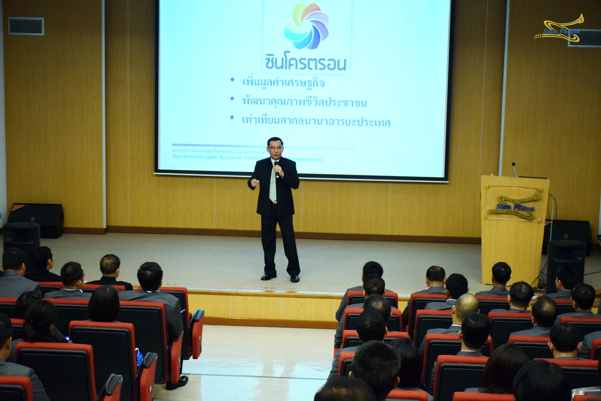 ศาสตราจารย์ นาวาอากาศโท ดร.สราวุฒิ สุจิตจร ผู้อำนวยการสถาบันวิจัยแสงซินโครตรอน ให้การต้อนรับ พ.ต.อ.คมจักร วรคามิน ผู้กำกับ ฝ่ายกิจการการฝึกอบรมวิทยาลัยการตำรวจ และผู้เข้ารับการฝึกอบรมหลักสูตร ผู้กำกับ รุ่นที่ 107 จากวิทยาลัยการตำรวจ จำนวน 150 ท่าน เนื่องในโอกาสเยี่ยมชมสถาบันวิจัยแสงซินโครตรอน (องค์การมหาชน) จ.นครราชสีมา เมื่อวันที่ 29 มิถุนายน 2559 พร้อมทั้งบรรยายสรุปภาพรวมของสถาบันวิจัยแสงซินโครตรอน รวมไปถึงการนำแสงซินโครตรอนไปประยุกต์ใช้ในด้านต่างๆ โดยเฉพาะด้านนิติวิทยาศาสตร์