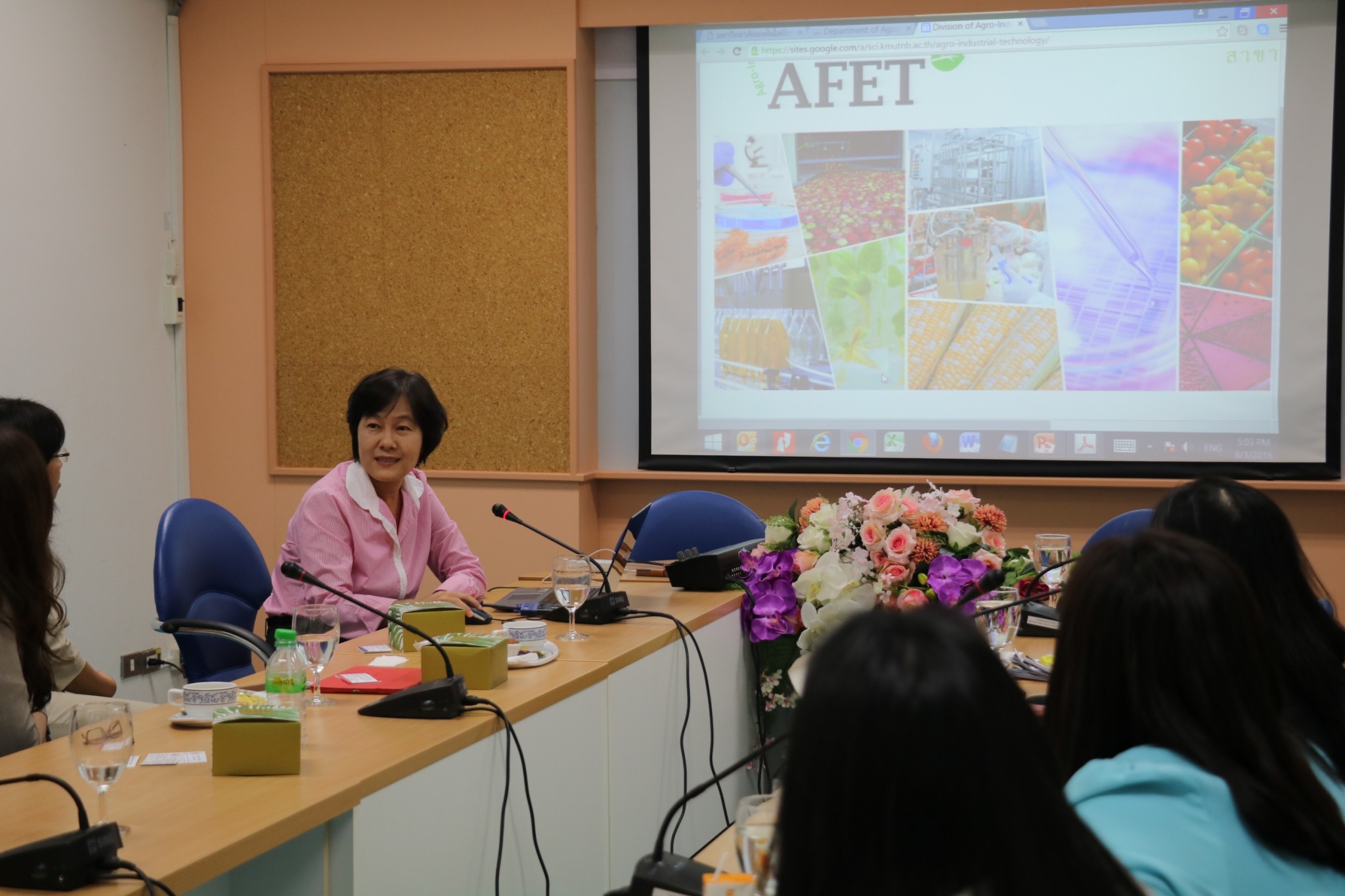 สำนักวิจัยวิทยาศาสตร์และเทคโนโลยี มหาวิทยาลัยเทคโนโลยีพระจอมเกล้าพระนครเหนือ นำโดยศ.ดร. สาวิตรี วทัญญูไพศาล หัวหน้าสาขาวิชาเทคโนโลยีอุตสาหกรรมเกษตร , รศ.ดร. วิไล รังสาดทอง และคณะผู้เชี่ยวชาญประจำสำนักวิจัยวิทยาศาสตร์และเทคโนโลยี (AFET) ให้เกียรติต้อนรับ ดร.วราภรณ์ ตัณฑนุช หัวหน้าส่วนงานพัฒนาธุรกิจ สถาบันวิจัยแสงซินโครตรอน (องค์การมหาชน) และคณะ เนื่องในโอกาสเข้าหารือกับผู้เชี่ยวชาญ เพื่อสร้างความเชื่อมโยงระหว่างอุตสาหกรรมกับภาครัฐ และสนับสนุนงานการทำงานวิจัยเฉพาะทางในกลุ่มอุตสาหกรรมทางด้านอาหาร ยา และเครื่องสำอาง เมื่อวันที่ 3 สิงหาคม 2559 ณ สำนักวิจัยวิทยาศาสตร์และเทคโนโลยี มหาวิทยาลัยเทคโนโลยีพระจอมเกล้าพระนครเหนือ