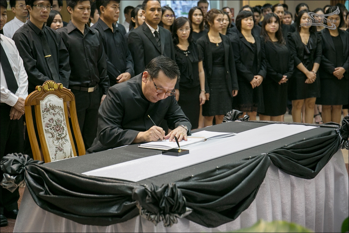 ด้วยสำนึกในพระมหากรุณาธิคุณหาที่สุดมิได้ และไว้อาลัยแด่ พระบาทสมเด็จพระปรมินทรมหาภูมิพลอดุลยเดช มหิตลาธิเบศรามาธิบดี จักรีนฤบดินทร สยามินทราธิราช บรมนาถบพิตร เสด็จสู่สวรรคาลัย