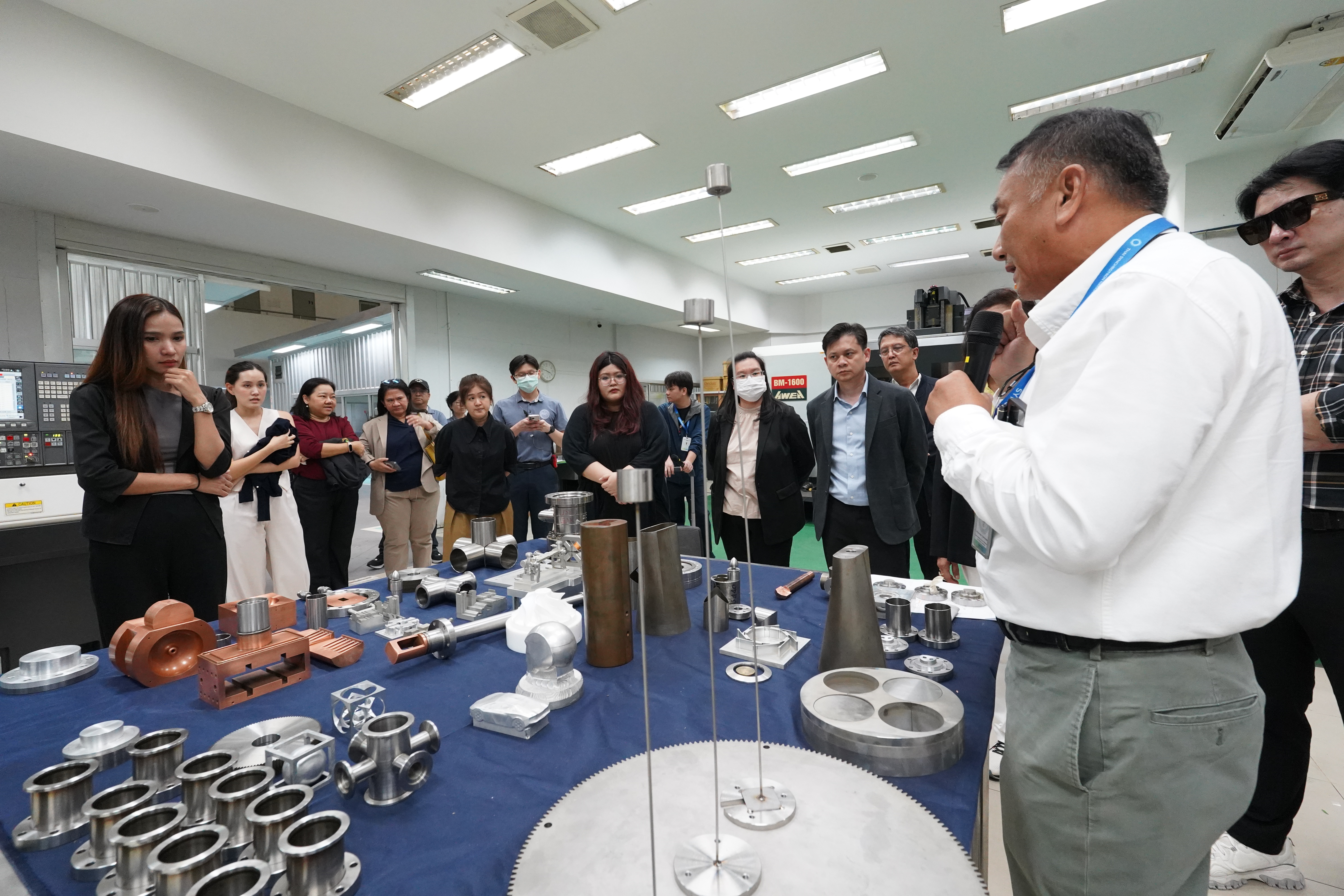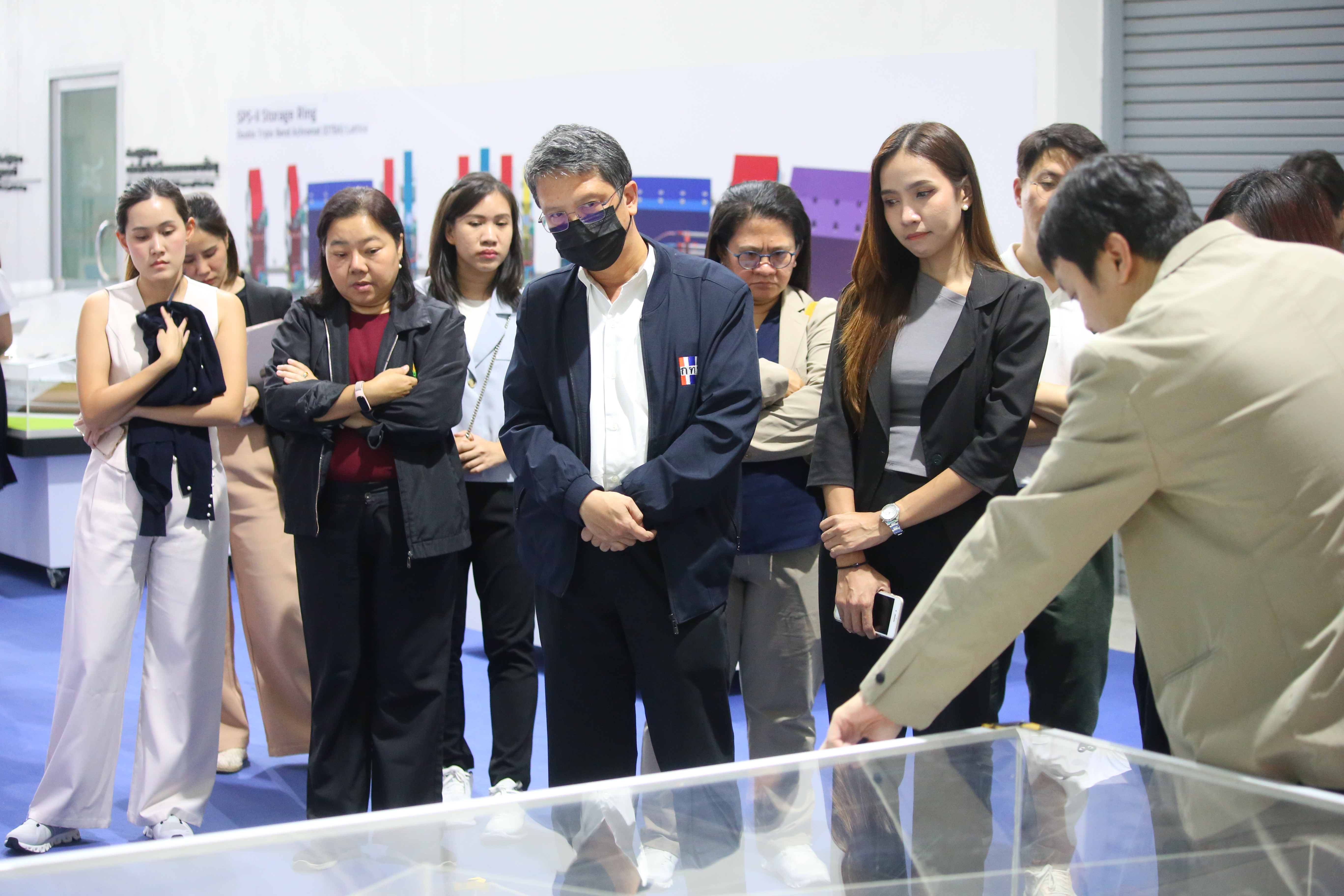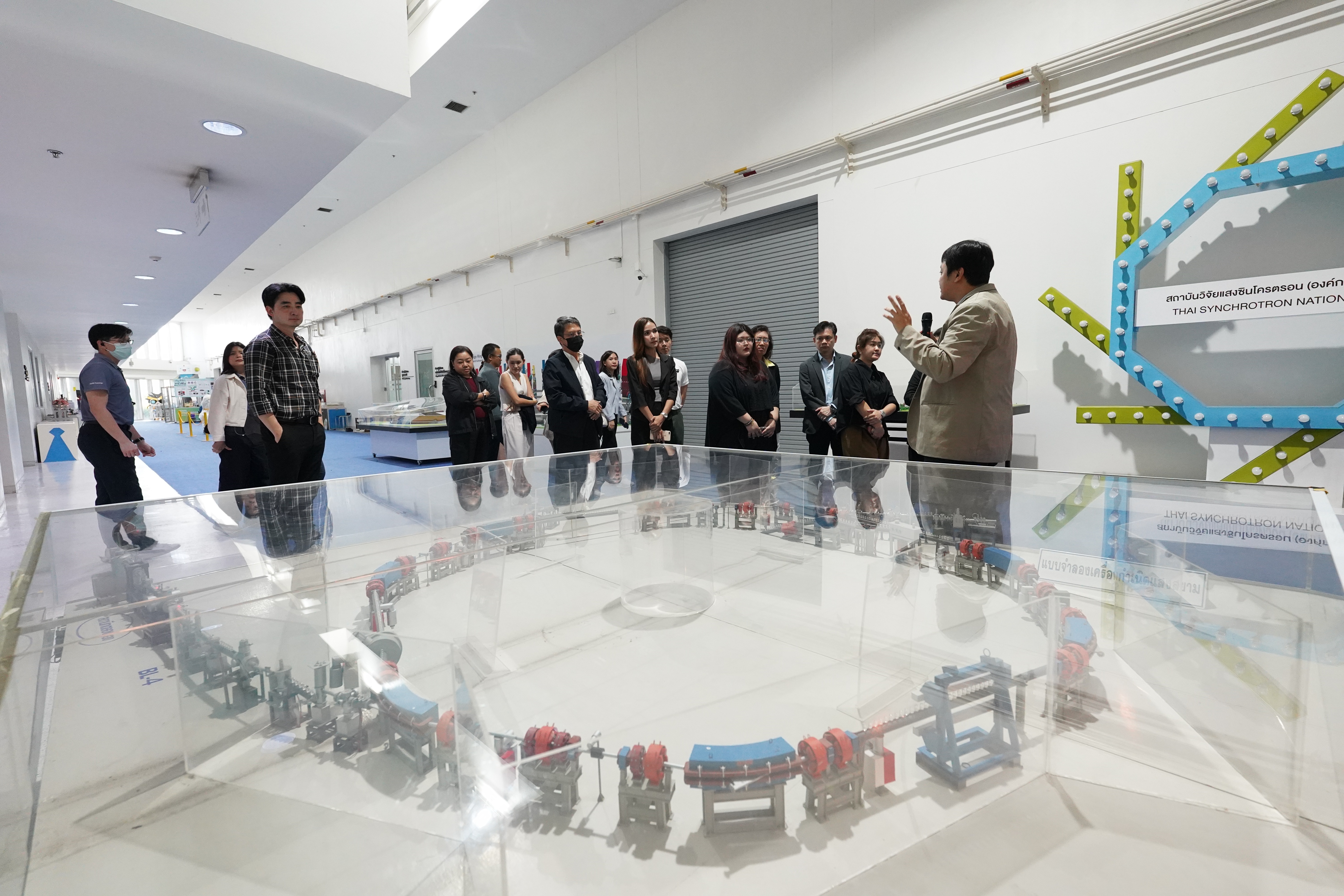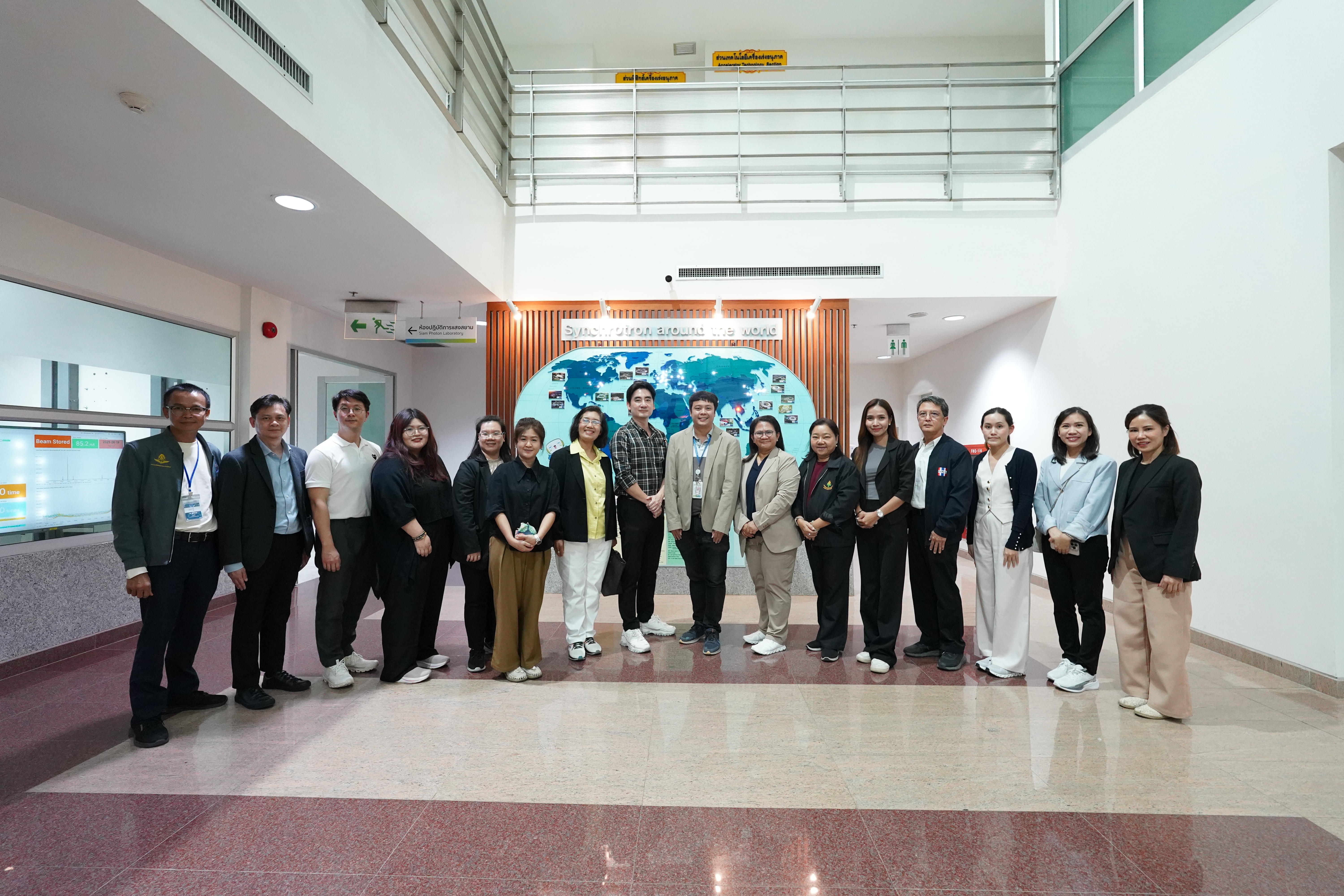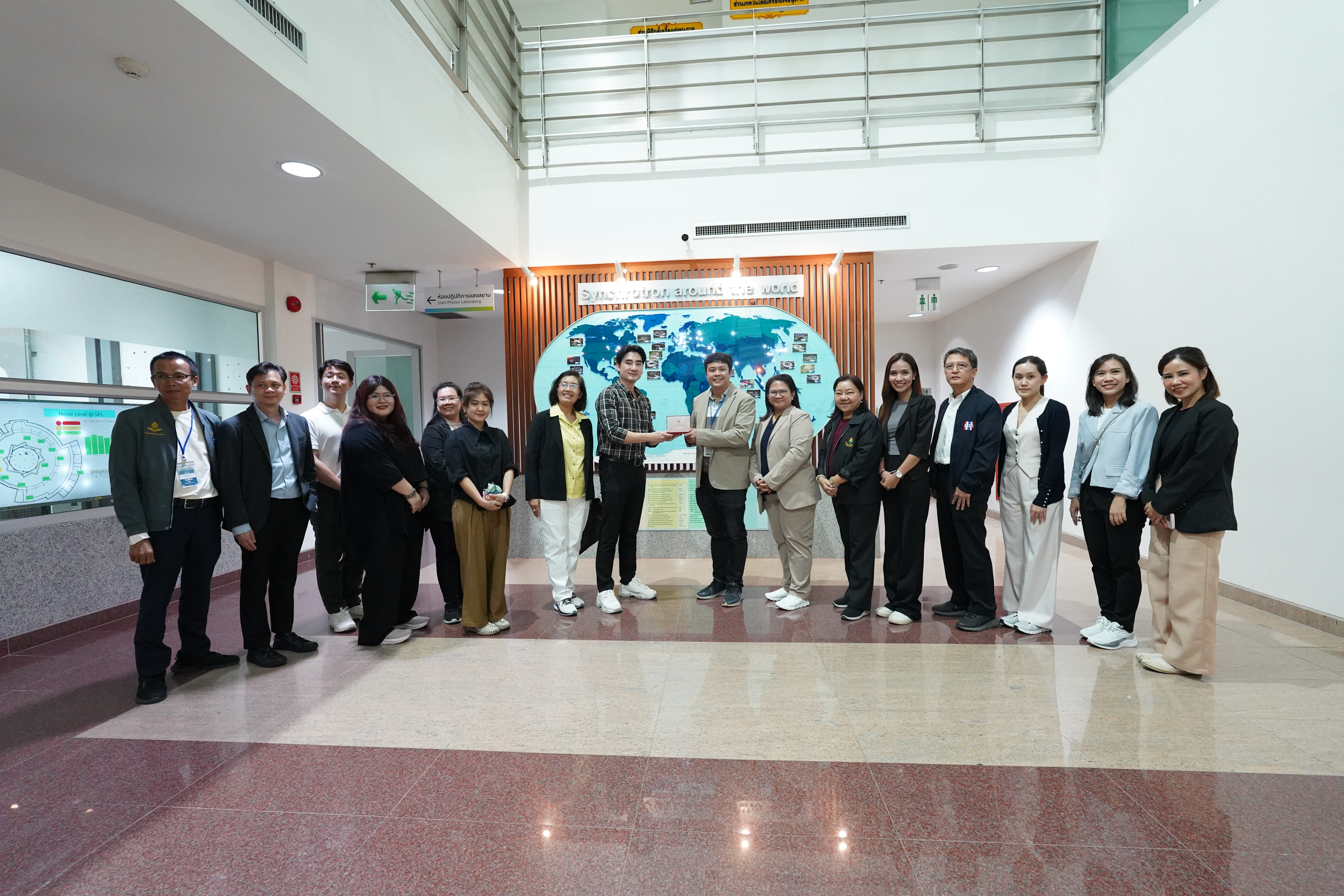 สถาบันวิจัยแสงซินโครตรอน (องค์การมหาชน) กระทรวงการอุดมศึกษา วิทยาศาสตร์ วิจัย และนวัตกรรม (อว.) โดย ดร.ประพงษ์ คล้ายสุบรรณ์ พร้อมคณะ ได้ต้อนรับคณะผู้บริหาร 20 ท่านที่เข้าอบรมในหลักสูตรนักบริหารยุทธศาสตร์ รุ่นที่ 7 ของสถาบันวิจัยนโยบายเศรษฐกิจการคลัง (สวค.) เมื่อวันที่ 19 มิถุนายน 2568 ที่ผ่านมา ซึ่งคณะได้เยี่ยมชมห้องปฏิบัติการแสงสยามและผลงานต่างๆ ของสถาบันฯ และฟังบรรยายถึงภาพรวมของสถาบันฯ โดย ดร.สุทธิพงษ์ วรรณไพบูลย์ หัวหน้าส่วนปฏิบัติการระบบลำเลียงแสง